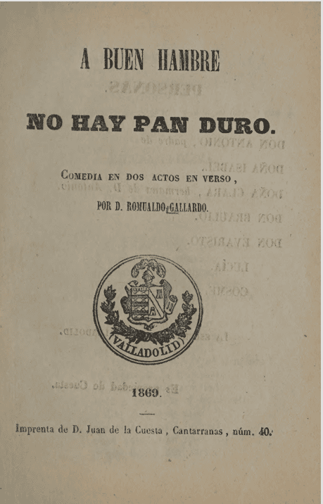 A buen hambre no hay pan duro. Comedia en dos actos en verso