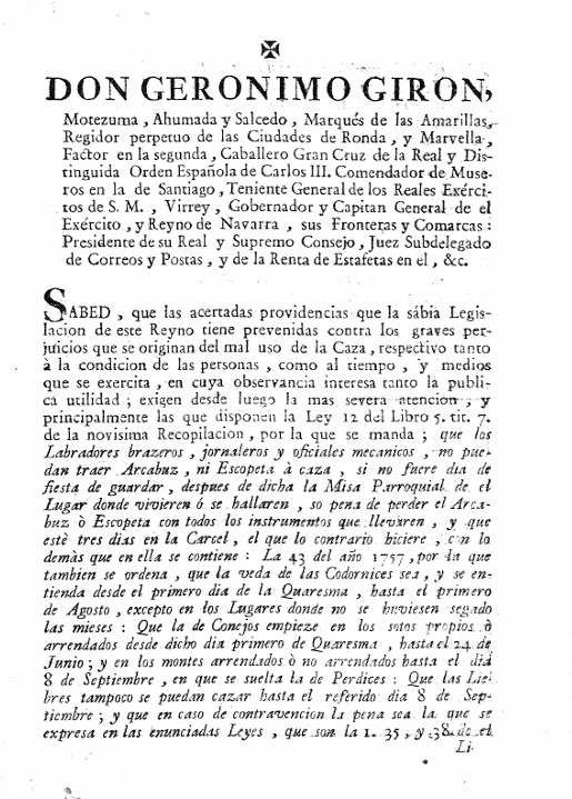 [Bando del Virrey… para que se hagan cumplir las leyes sobre caza contenidas en la legislación navarra]