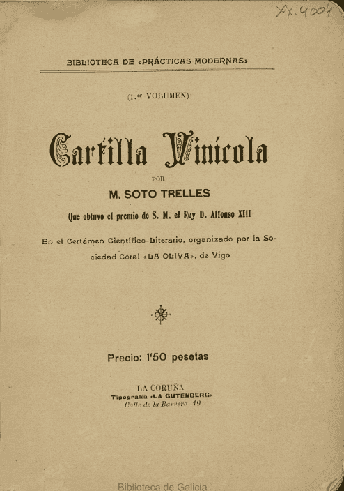 Cartilla vinícola : que obtuvo el premio de S. M. el Rey D. Alfonso XIII, en el Certámen Científico-Literario,…