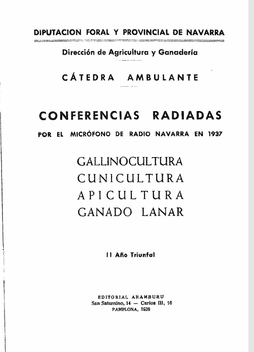Conferencias radiadas por Radio Navarra en 1937 : gallinocultura, cunicultura, apicultura, ganado lanar