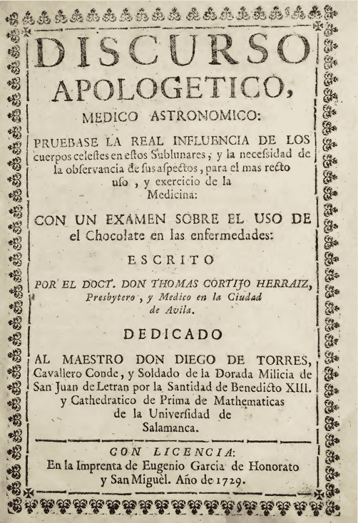 Discurso apologético, médico astronómico…con un examen sobre el uso de el chocolate en las enfermedades