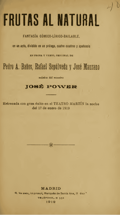 Frutas al natural: fantasía cómico-lírico-bailable, en un acto…