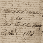 Manuscrito de cocina mexicana: rabioles fingidos, arroz con bacalao, truchas empapeladas, mole poblano muy bueno, costras de buey, etc.