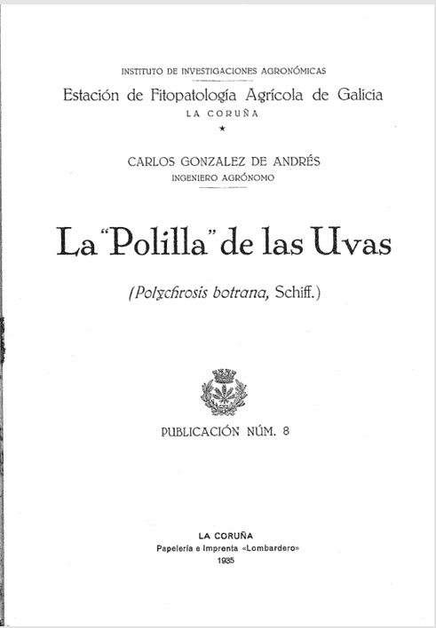 La ‘Polilla’ de las uvas: (polychrosis botrana, Schiff.)