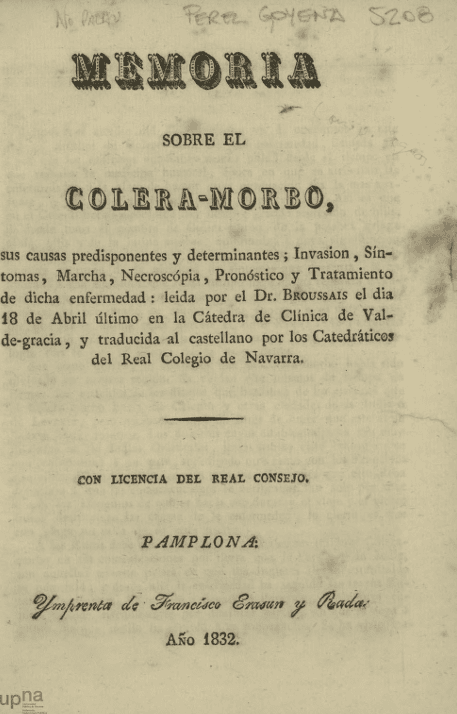 Memoria sobre el cólera-morbo : sus causas predisponentes y determinantes… pronóstico y tratamiento de dicha enfermedad