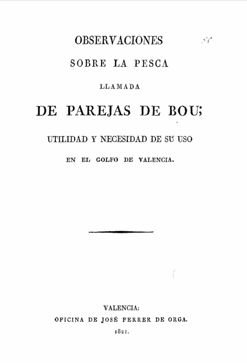 Observaciones sobre la pesca llamada de parejas de bou : utilidad y necesidad de su uso en el golfo de Valencia