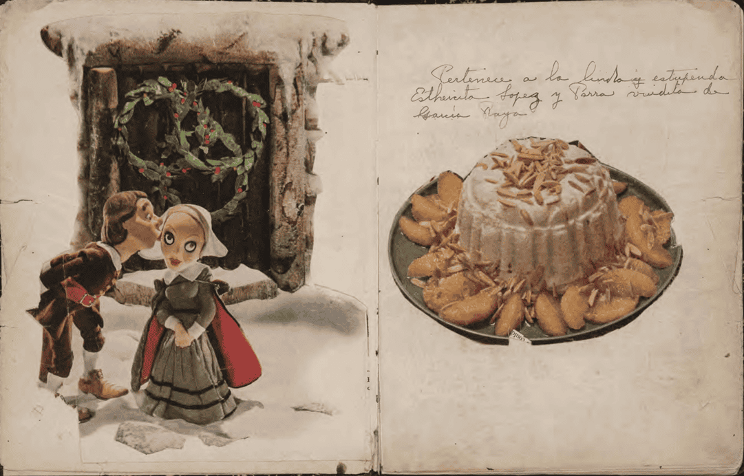 Manuscrito de cocina mexicana. Algunas recetas: camarones frescos, mole verde, albóndigas, cochinitos, pan de dátil, dulce de chocolate, peras de almendra, pastel de fresas, varias salsas y similares
